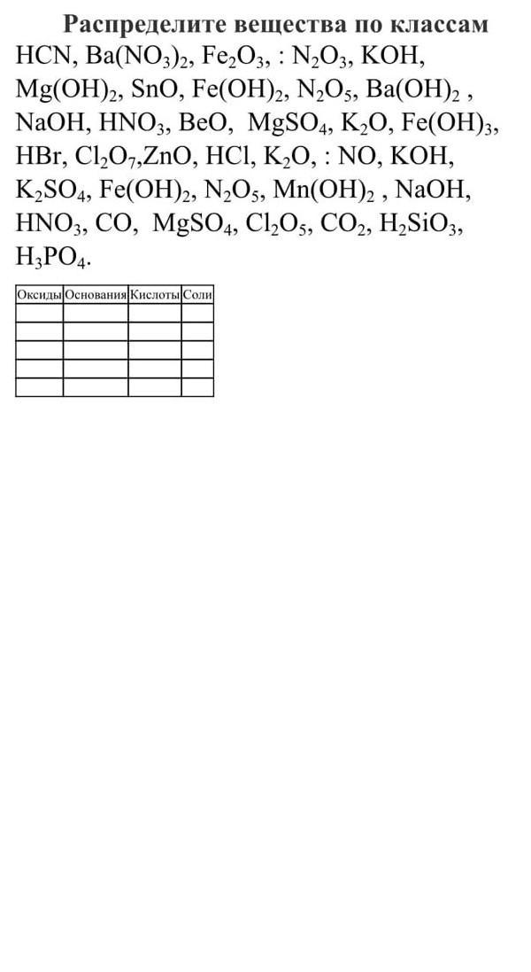 Выполнить задание,плюсом объяснить как различать по формулам соли и основания