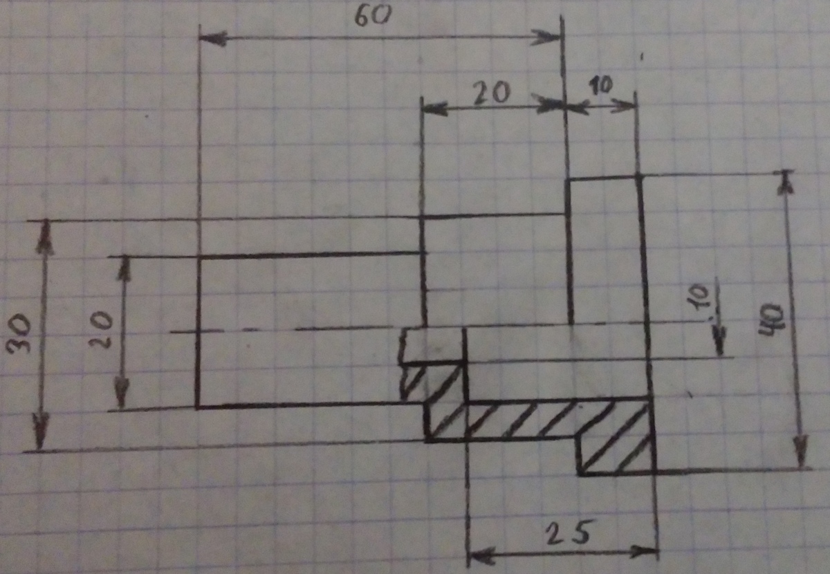 Если бы я сейчас делал этот чертеж для преподавателя, я бы добавил еще один вид, и сделал бы разрез на данном виде, чтобы показать внутренние размеры, как я помню( довольно смутно) - внутренние размеры можно указать только при разрезе, но я точно не помню. И еще, вы проходили разрезы?
