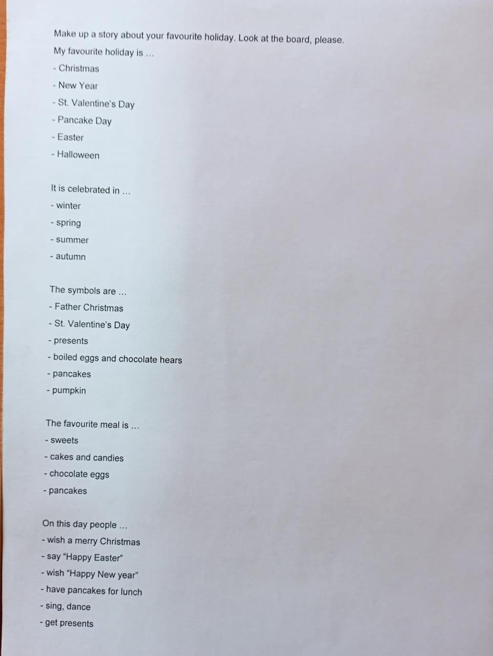 My favourite holiday is New Year.New Year celebrate in winter 31 of January.Every one loves this holiday because he good and funny.The symbols of this holiday is Father Christmas and a lot of presents.In this time peoples do sweets and Festive dinner.On this day people sing songs,dance,get presents.This holiday is so great for everyone