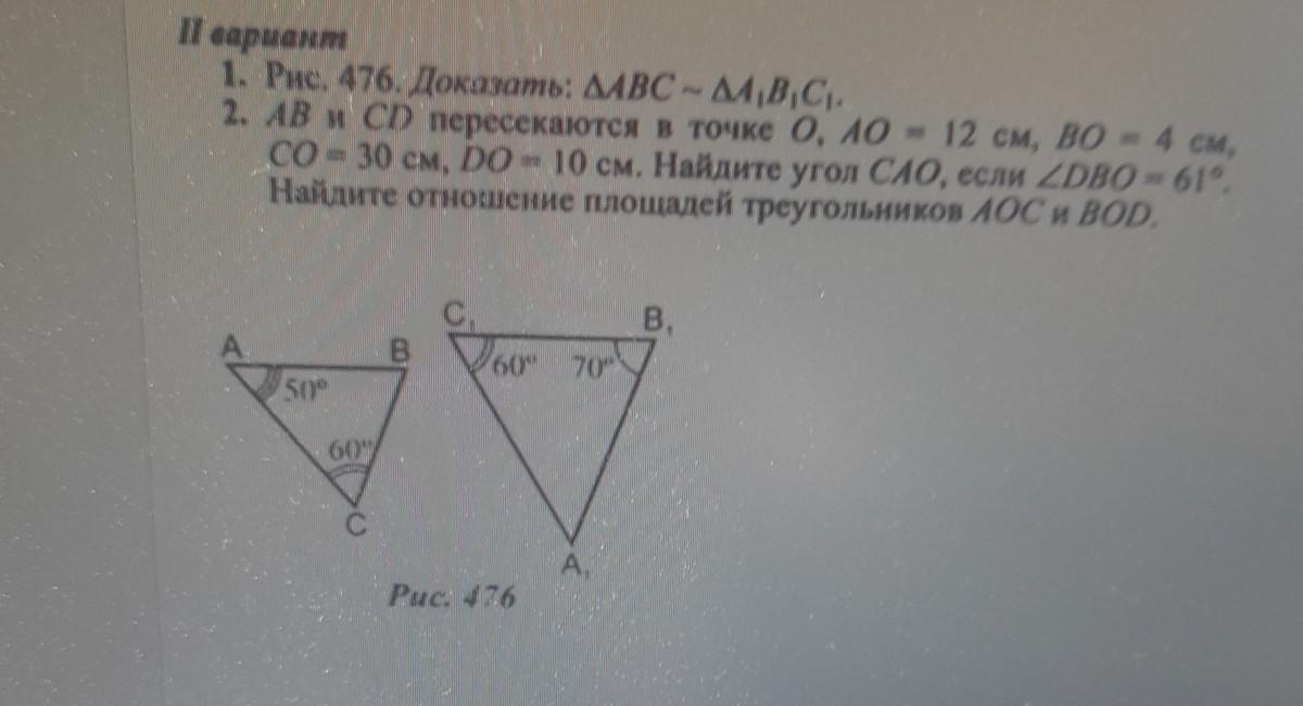 задание по геометрии рисунок 476 доказать угол АОС и угол A1 B1 C1 помогите пожалуйста 1 задания
