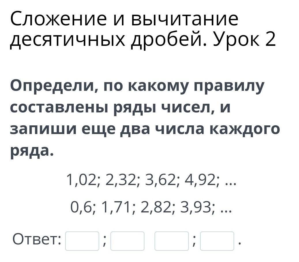 Определи, по какому правилу составлены ряды чисел, и запиши еще два числа каждого ряда.