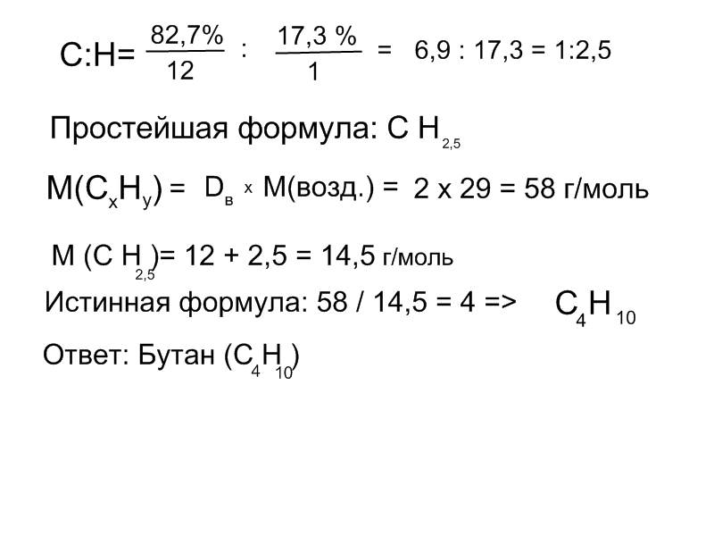 найдите молекулярную формулу предельного углеводорода, в составе которого массовая доля углерода составляет 0,827 водорода 0,173 а плотность по воздуху 2