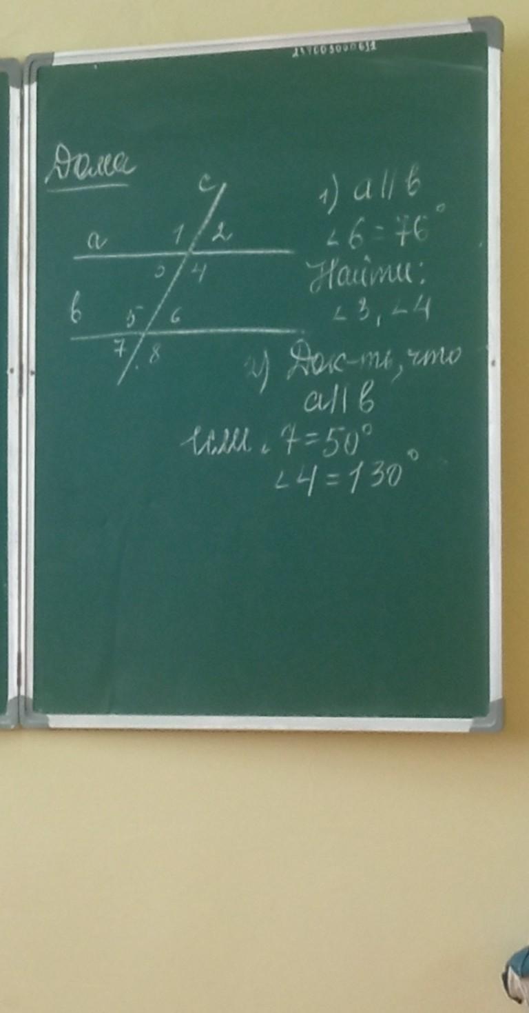 Угол 3 и угол 6 - внутренние накрест лежащие, они равны, а угол 3 и угол 4 смежные, их сумма равна 180, тогда: