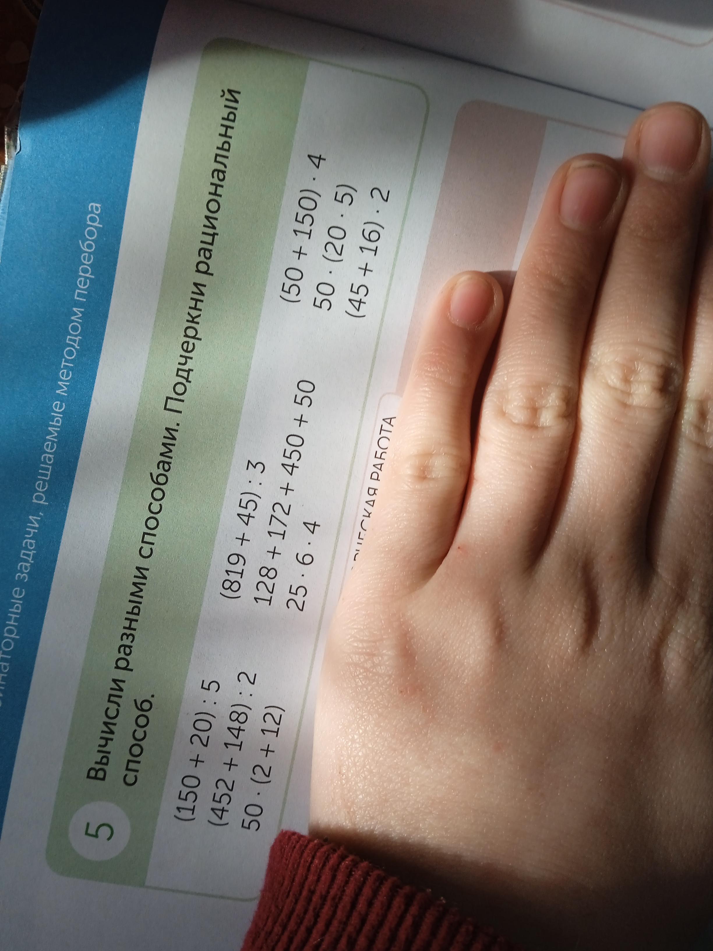 (150+20):5= (150:5)+(20:5)= 30+4 = 34 (рациональный);