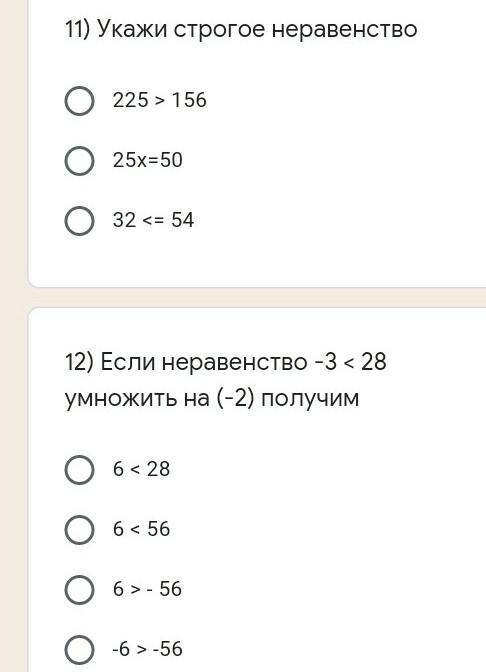 11) 225 > 156 (строгие - со знаком > или <)