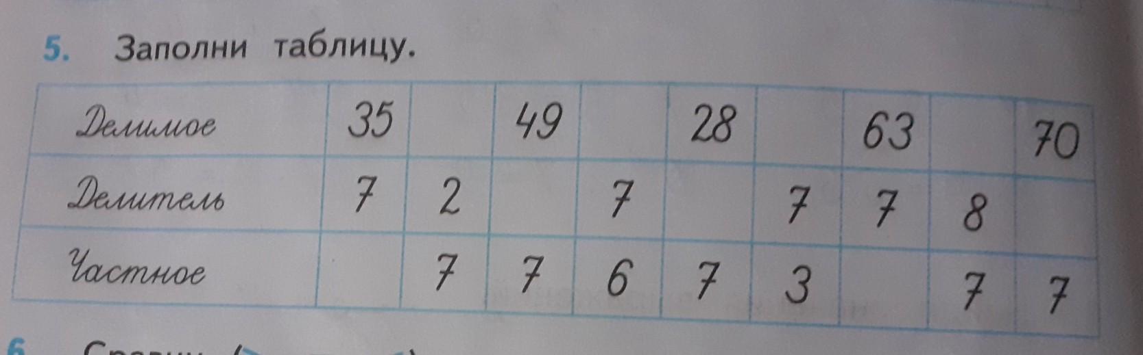 1) 5 2)14 3)7 4)42 5)4 6)21 7)9 8)56 9)10