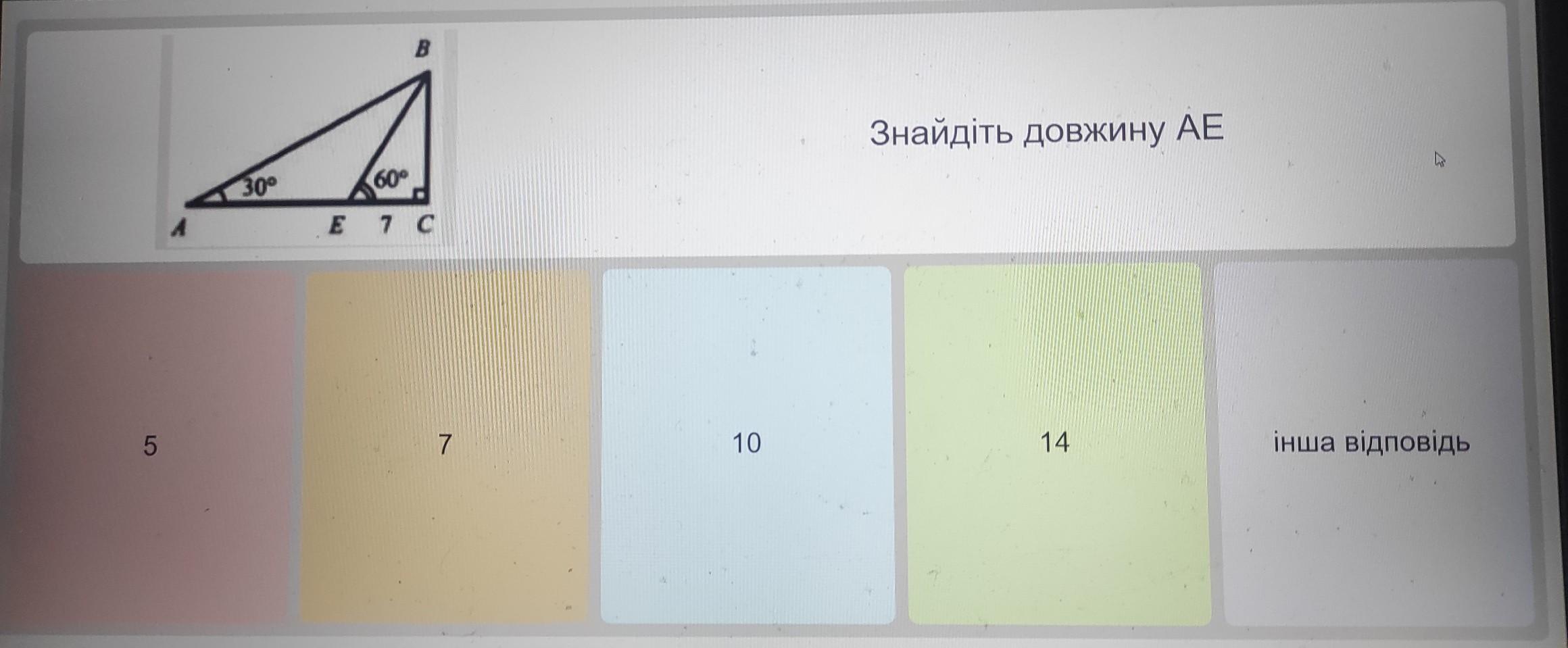поскольку BEC прямокутний трикутник із кутами 30 60 90 то гіаотенуза ВЕ в 2 рази більша за катет ЕС звідси ВЕ = 2 ЕС = 14