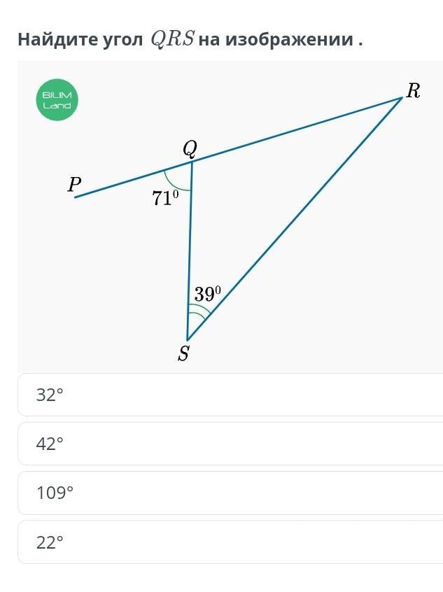 = ∠QSR + ∠QRS, то есть 71° = 39° + ∠QRS.