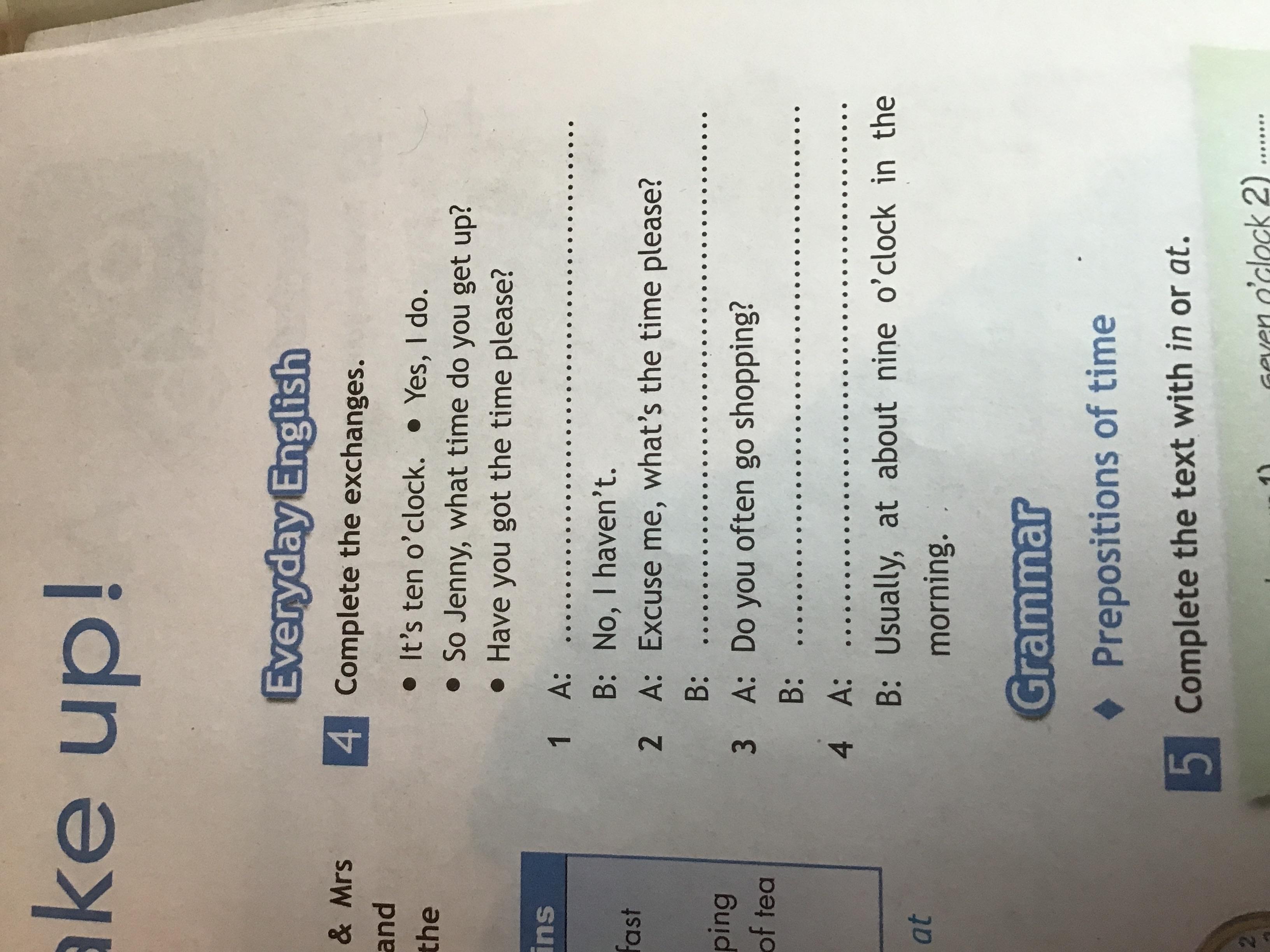 1. haVE you got the time plase 2. It is ten o clock 3/ Yes I do 4/ So Jenny