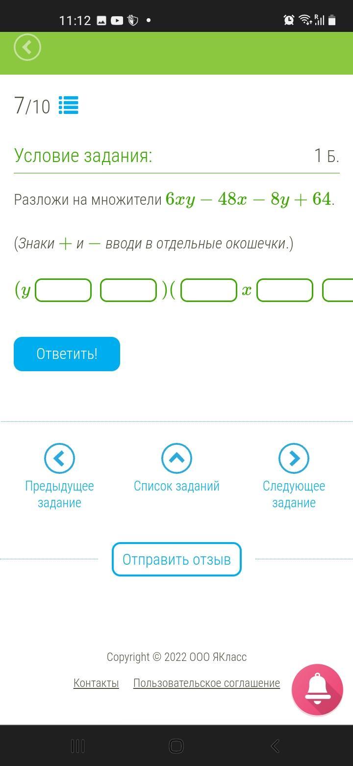 6xy - 48x - 8y + 64 \\ 2(3xy - 24x - 4y + 32) \\ 2(3x - (y  - 8) - 4(y - 8)) \\ 2(y - 8) \times (3x - 4)