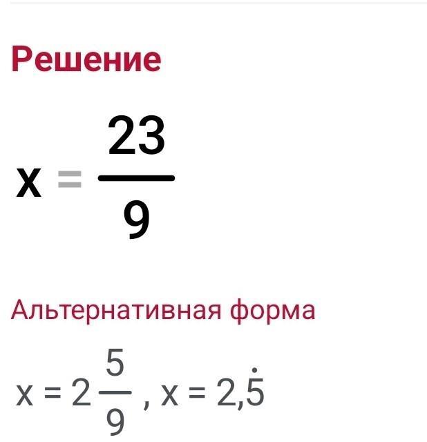 х= 23/9 альтернативная форма х= 2 5/7 , х= 2,5