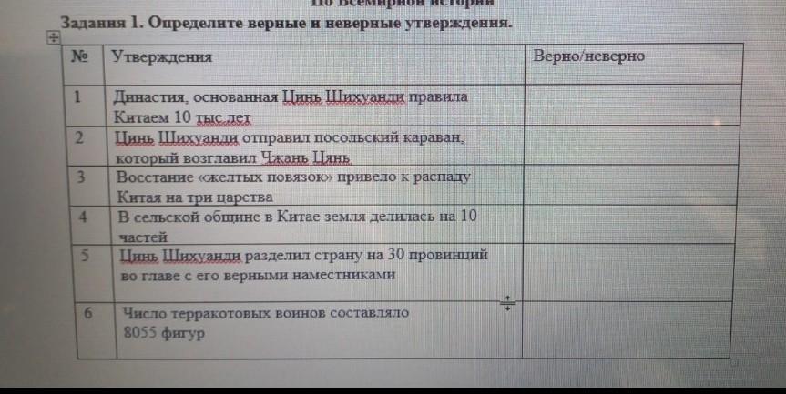 Ответ:1 утверждение неверно - Основанная им династия Цинь планировавшая обладать Китаем на протяжении 10000 поколений была свергнута через несколько лет после его смерти.