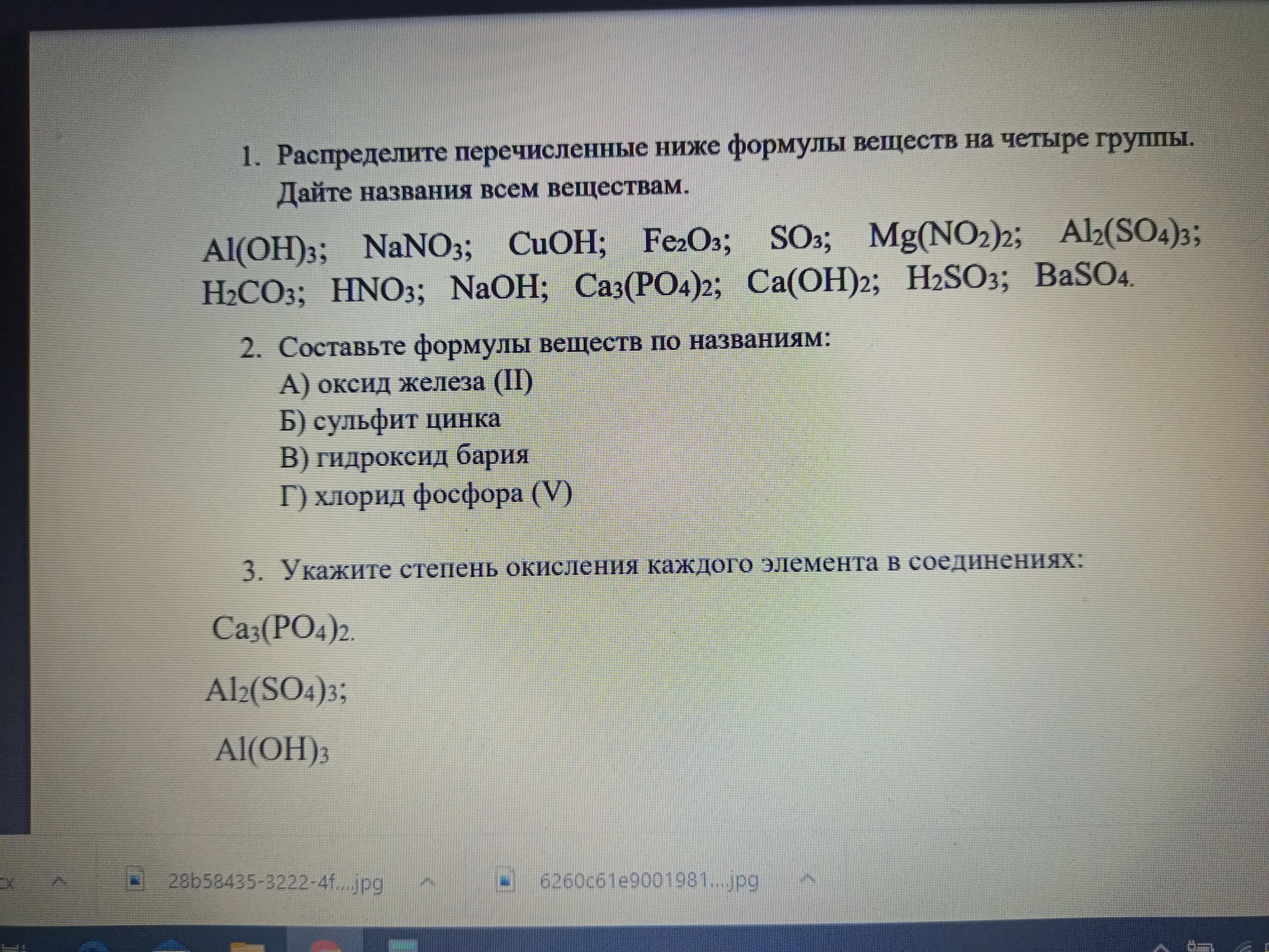 Соли: NaNO3; Mg(NO2)2; Al2(SO4)3; Ca3(PO4)2; BaSO4