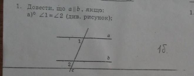 За малюнком кут 1 и кут 2 відносні, а за умовою вони рівні. Отже, А і Б паралельні, тому що відносні кути рівні