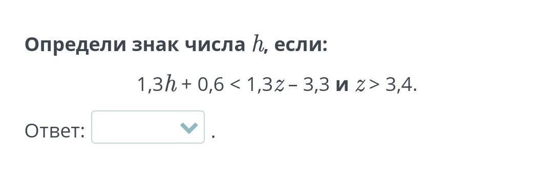 Линейное неравенство с одной переменной. Решение линейных неравенств с одной переменной. Урок 1 Определи знак числа h, если: 1,3h + 0,6 3,4. Ответ минус или плюс срочно