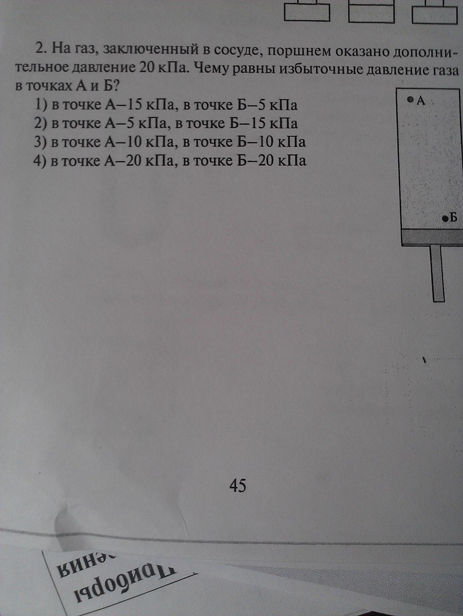 на газ,заключённый в сосуде ,поршнем оказано дополнительное давление 20 Н чему равны избыточные давление газа в точказ А и Б?