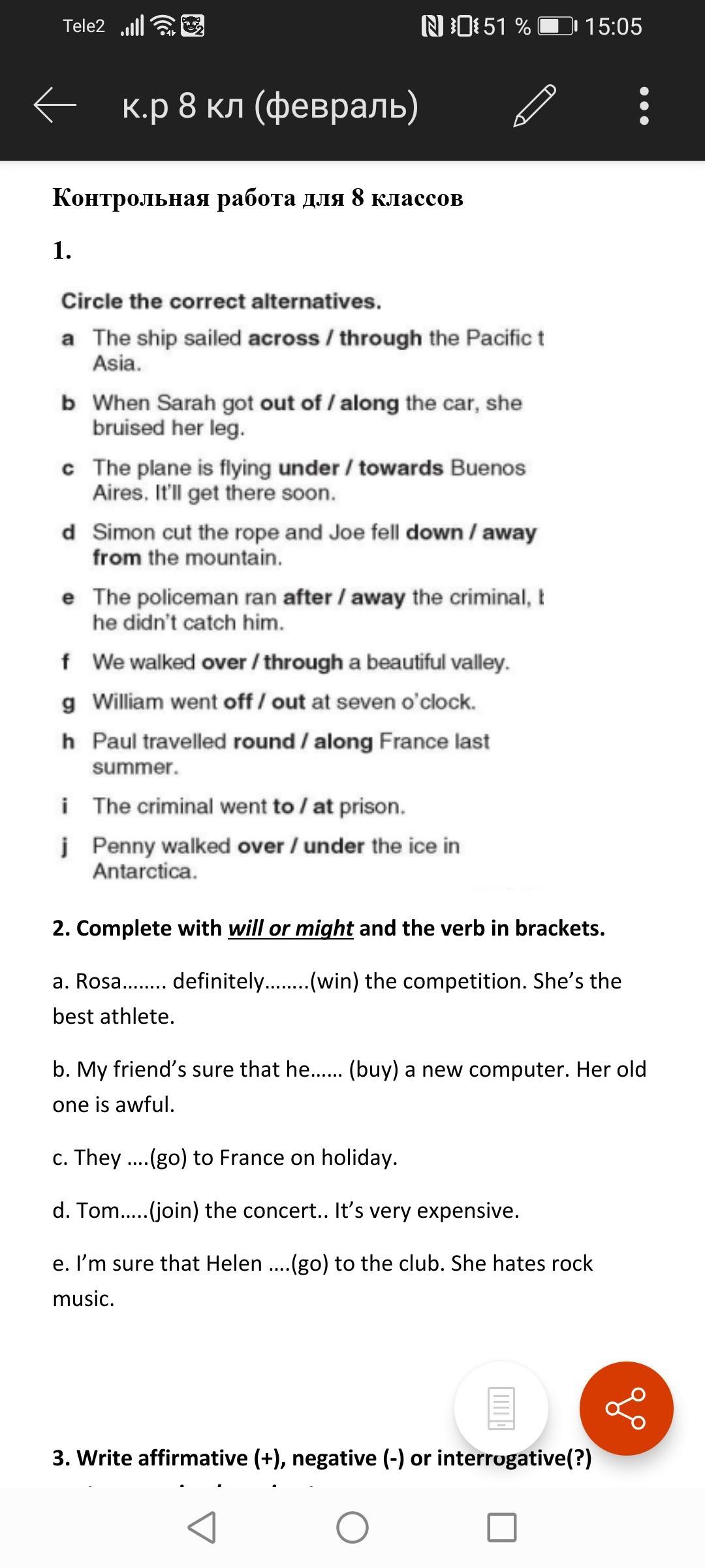 Во втором задании смотри, нужно ли писать negative или positive sentences, либо просто вставить wiil or might. Если второй вариант, то написанное сойдёт