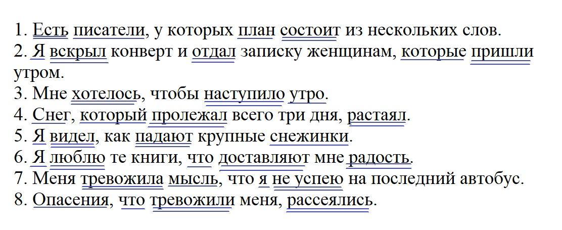 Списать предложения, выделить грамматические основы, расставить знаки препинания, указать тип придаточного предлож. Здесь даны придат. определительные и придаточные изъяснительные.