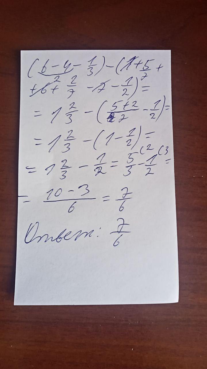(6-4-1/3)-(1+5/7+6+2/7-7-1/2)=(2-1/3)-(0-1/2)=(2-1/3)-1/2=5/3-1/2=7/6