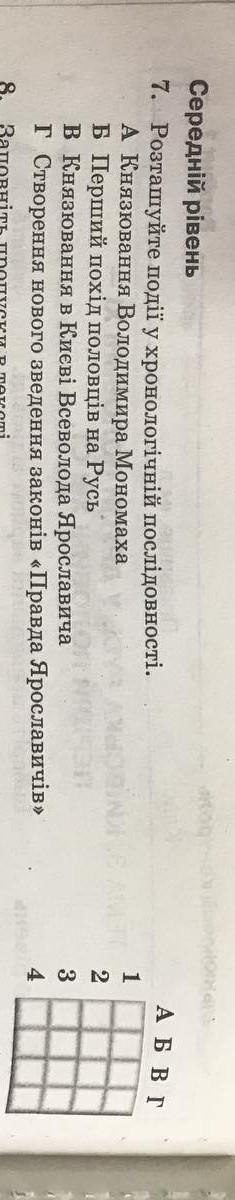 Події правління Володимира Мономаха будь ласка! Розташуйте події правління Володимира Мономаха в хронологічній послідовності: початок правління Володимира Мономаха в Києві; створення нового зводу законів « "Статуту Володимира Всеволодовича"; поразка дружин Святополка Ізяславича і Володимира Всеволодовича від половців на річці Стугна; Любецький з'їзд князів; загальноруський похід в степ проти половців