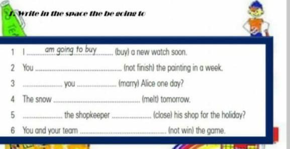 write in the space the be going to. СРОЧНО ПОМОГИТЕ. ДАЮ 50