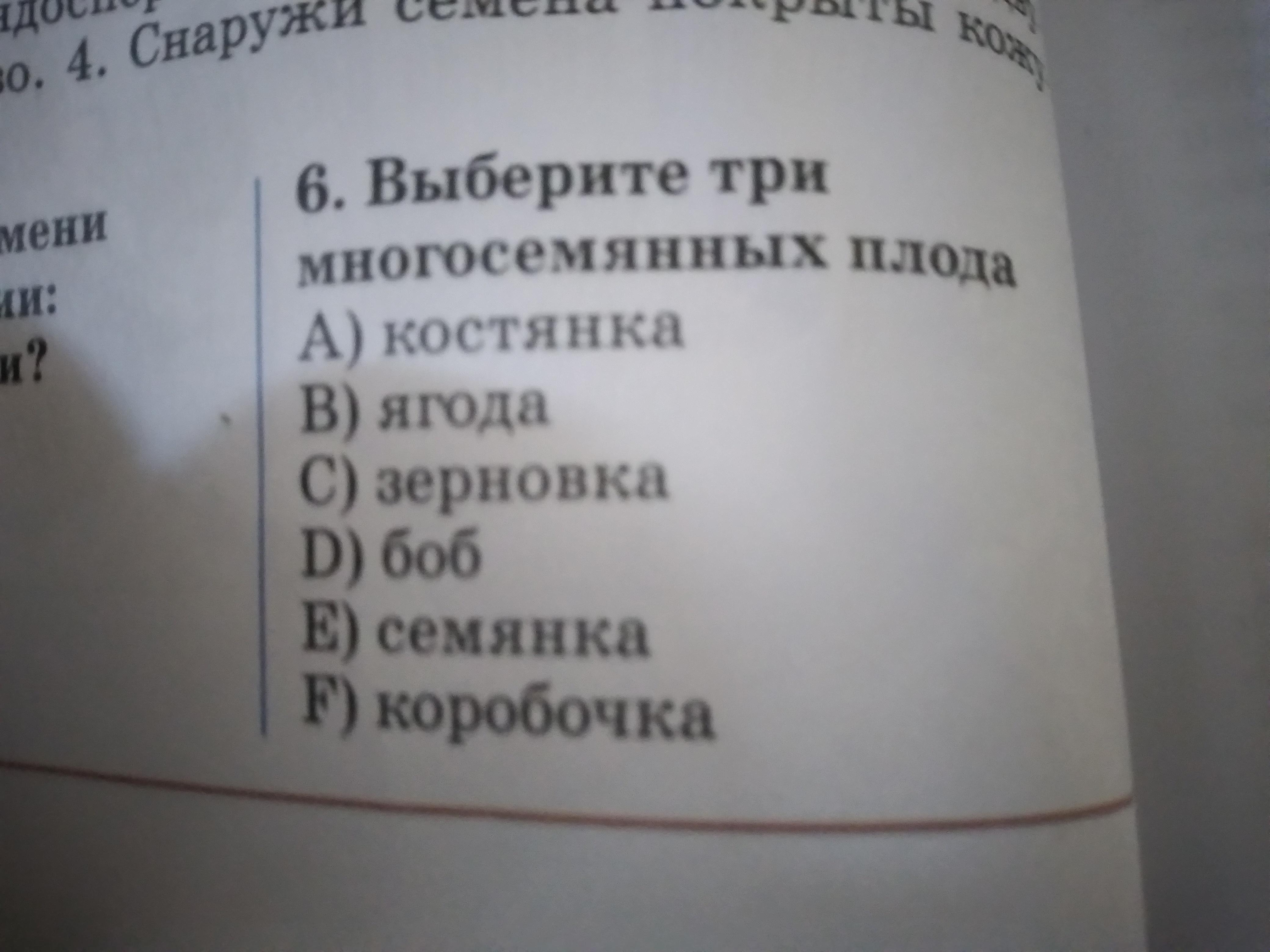 Ответ: А) Костянка, В) Ягода, D) Боб