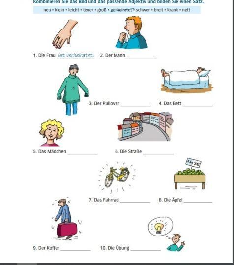 2 krank 3 gro. ,4 klein, 5 nett, 6 breit, 7 neu, 8 teuer, 9 shwer, 10 leicht