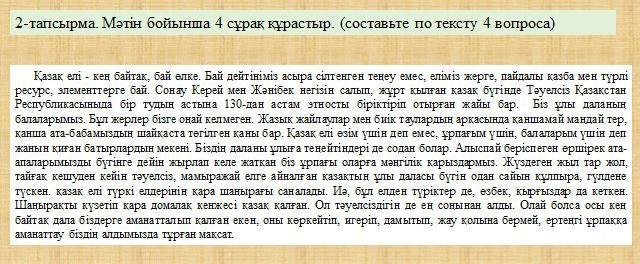 2) Тәуелсіз Қазақстан Республикасының быр тудың астында каншадан астам этносты бириктирип отыр?