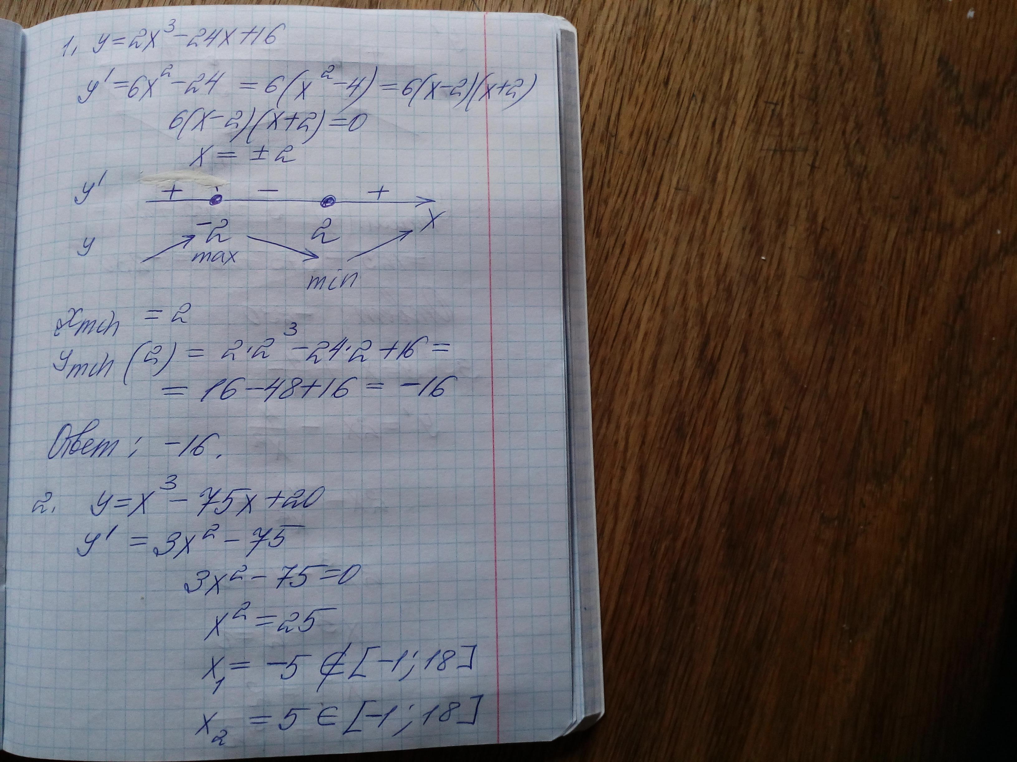 1. Найди сумму минимума функции у = 2х^3 - 24х + 16