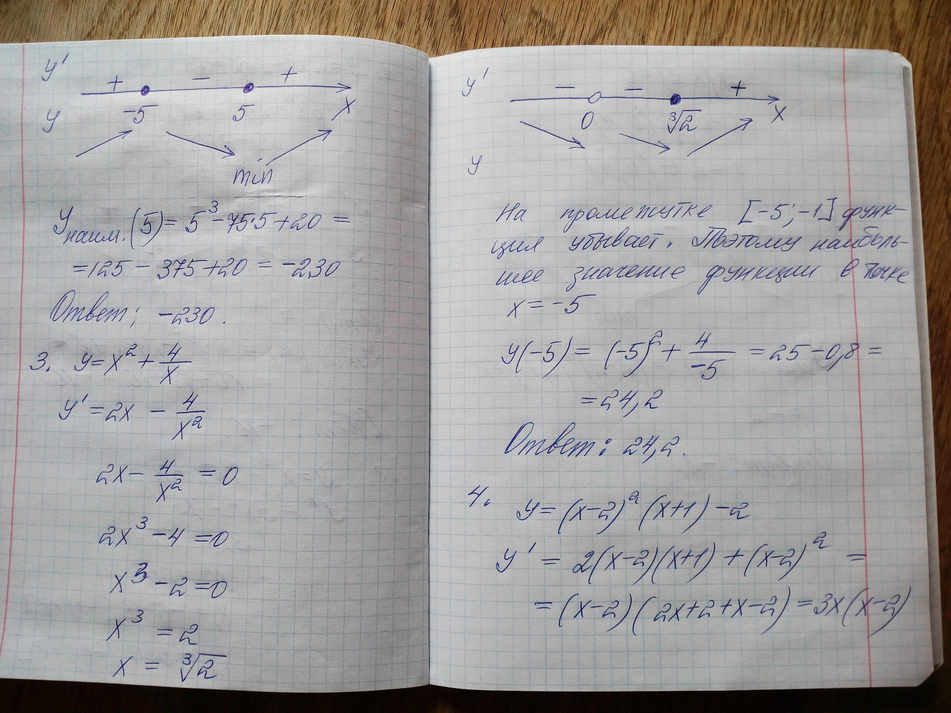 3. Найди наибольшее значение функции у = х^2 + 4/х на отрезке [-5; -1]