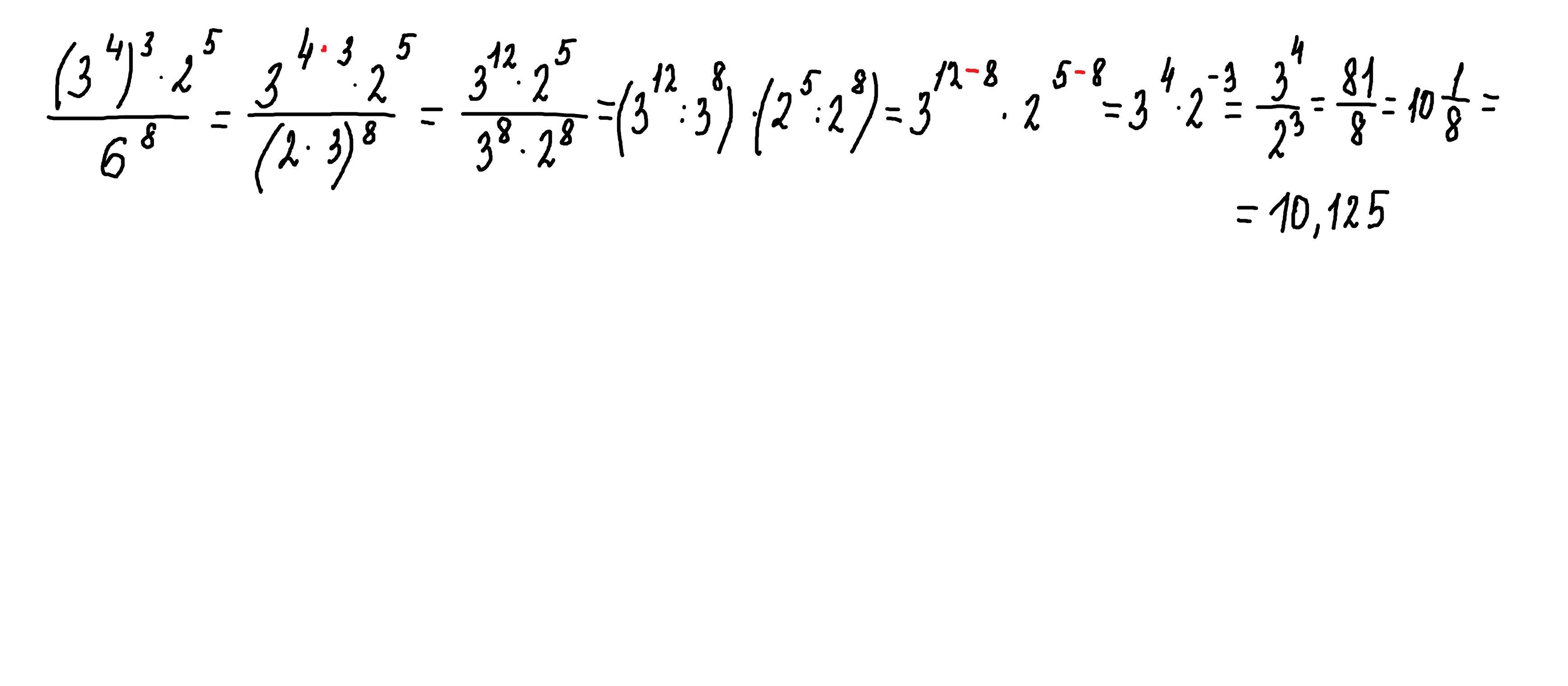 при возведении степени в степень показатели перемножаются,при умножении степеней с одинаковым основанием -показатели складываются,при делении-вычитаются.