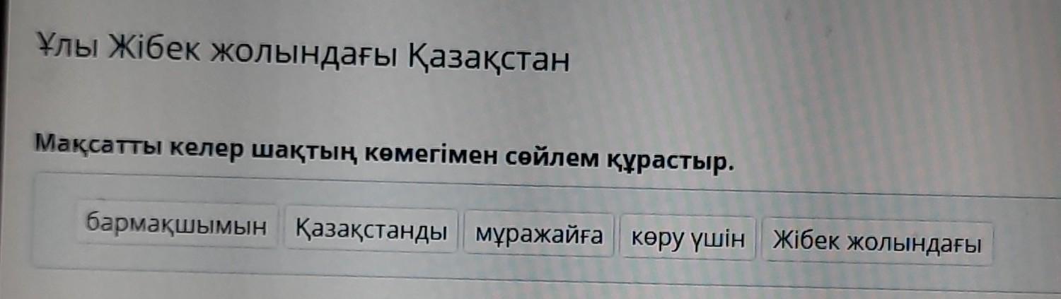 Ұлы Жібек жолындағы Қазақстан Мақсатты келер шақтың көмегімен сөйлем құрастыр. көру үшін Жібек жолындағы Қазақстанды мұражайға бармақшымын