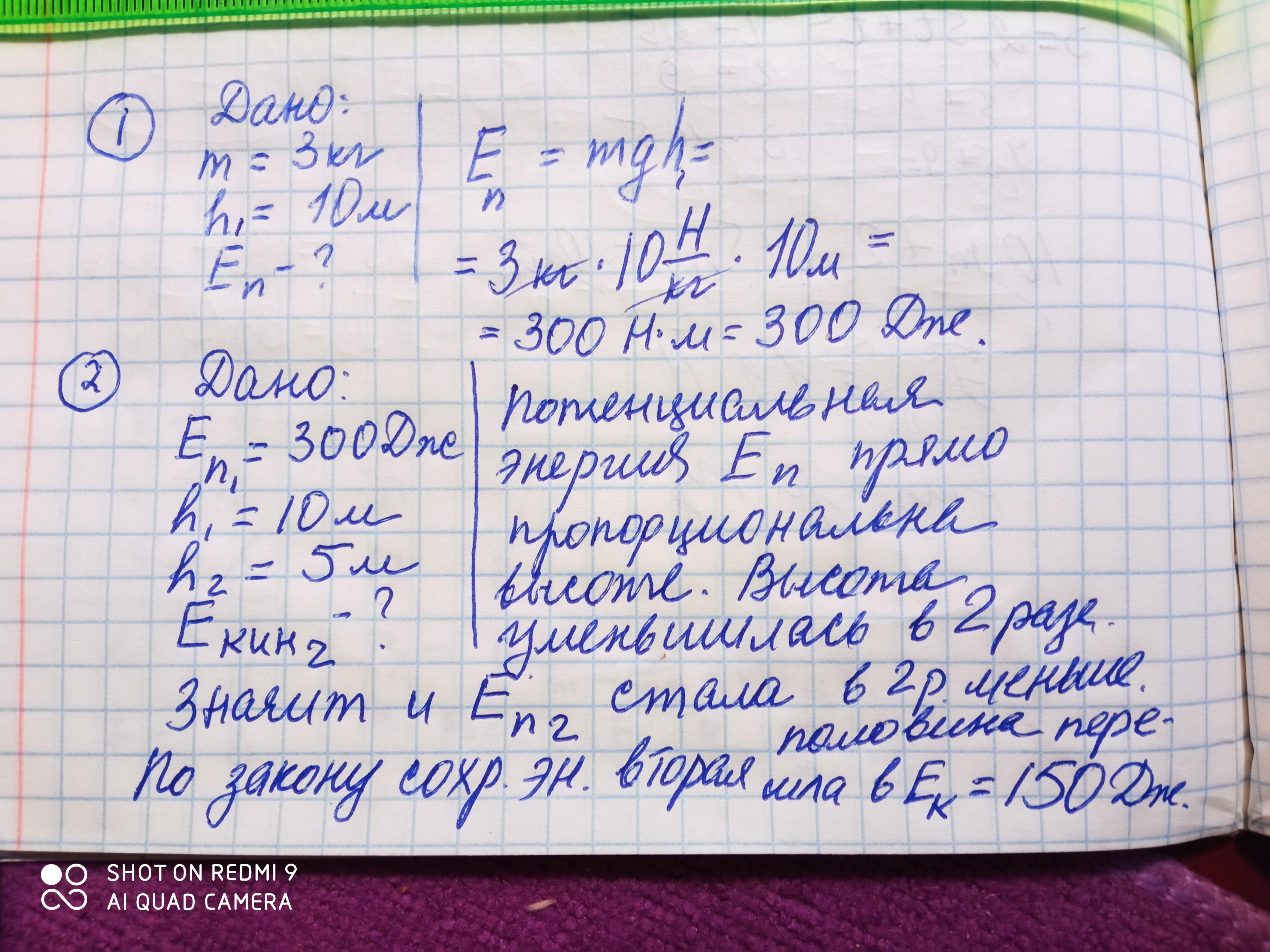Eп₁ = m·g·h₁ = 3·10·10 = 300 Дж