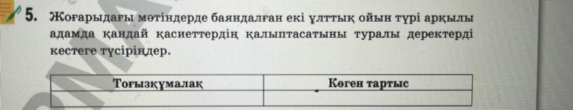 5. Жоғарыдағы мәтіндерде баяндалған екі ұлттық ойын түрі арқылы