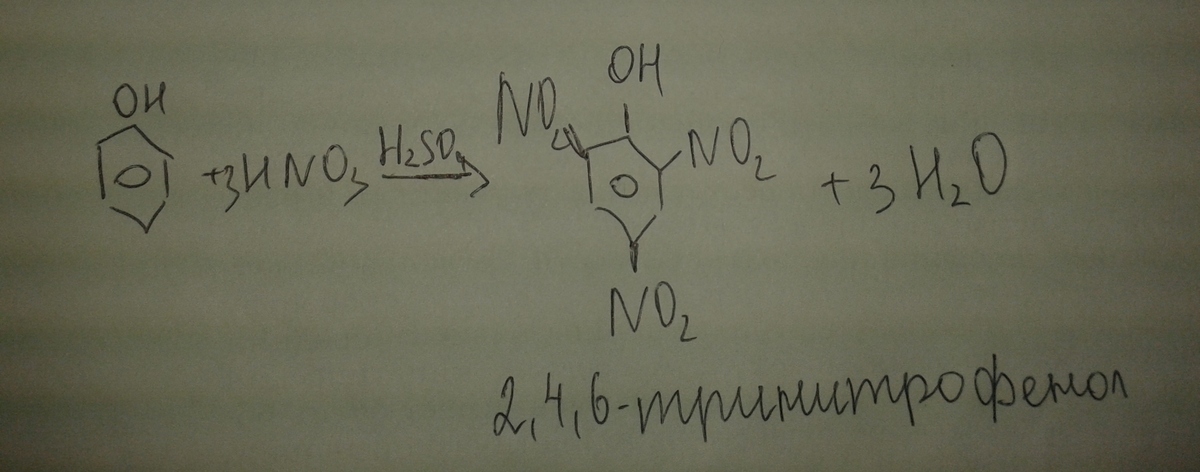 при нитровании фенола получается пикриновая кислота - очень взрывчатое вещество. Составьте уравнение этой реакции, объясните направление ее протекания, назовите продукт ( IUPAC ).