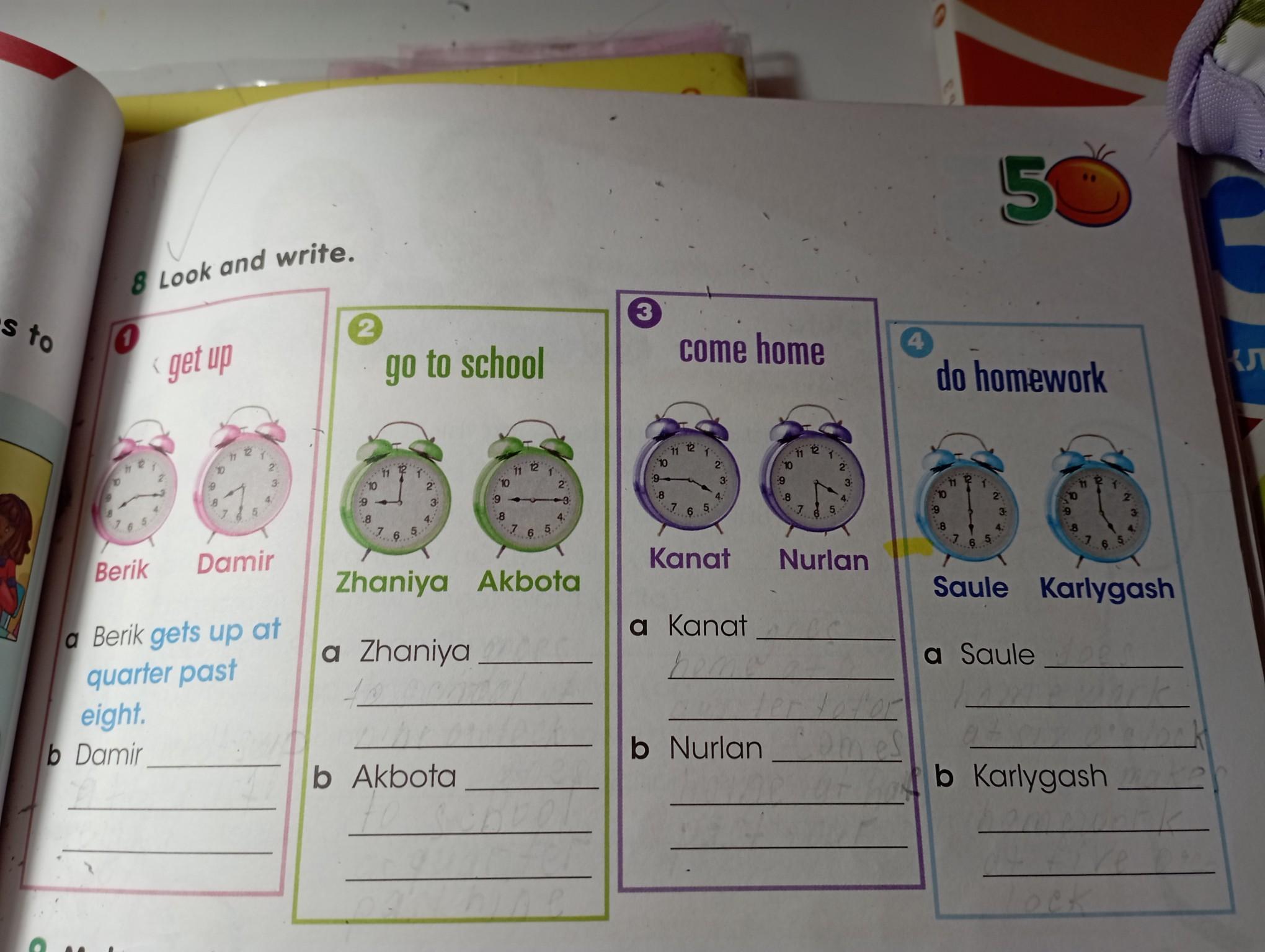 Ответ:Damir gets up at half of eight далее хз