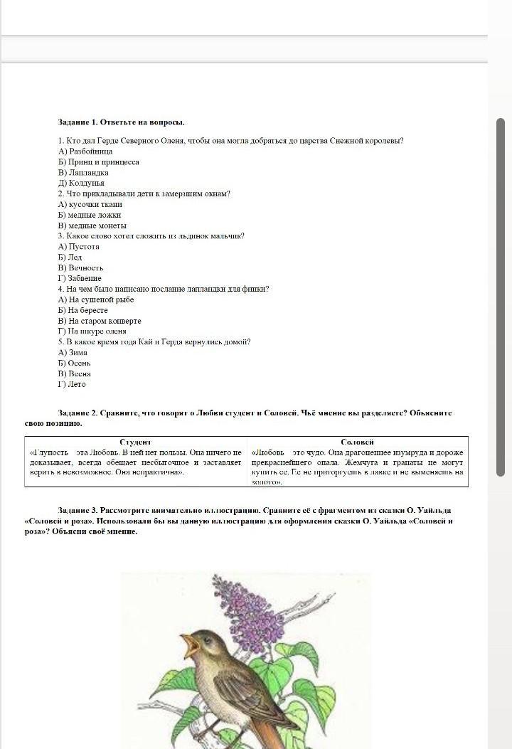 соловей говорит о любви хорошо, о том что это прекрасно. Студен же говорит, что любовь это плохо. Я разделяю ответ соловья, ведь он настоящий герой и пожертвовал собой ради розы, а это настоящий поступок, который показывает веру в любовь и в ее существование.