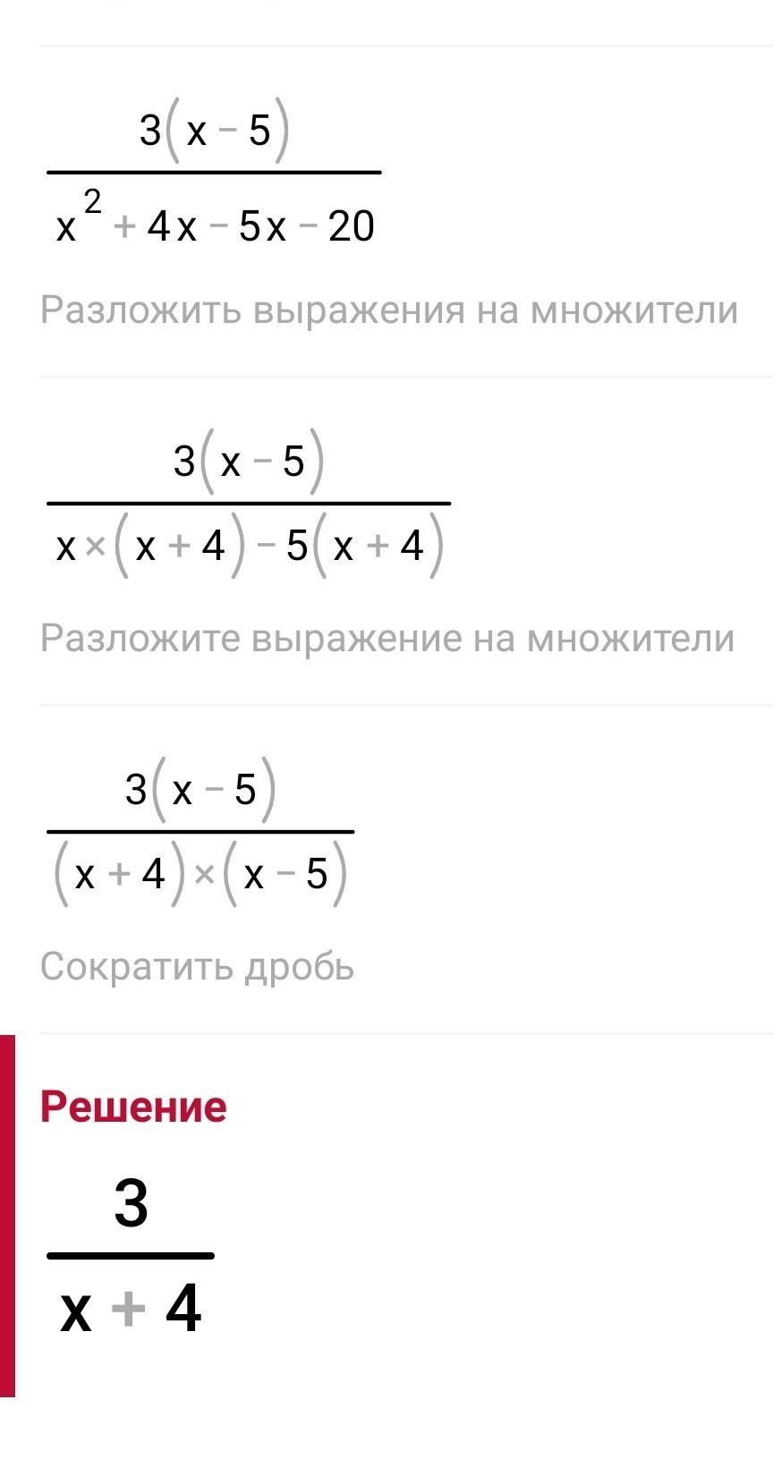 3(x-5)/x^2+4x-5x-20=3(x-5)/x(x+4)-5(x+4)=3(x-5)/(x+4)(x-5)=3/x+4