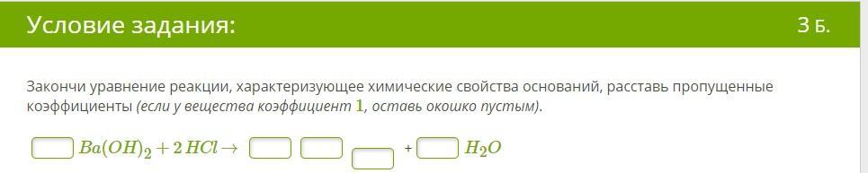 Ba(OH) + 2HCl = BaCl2 + H2O