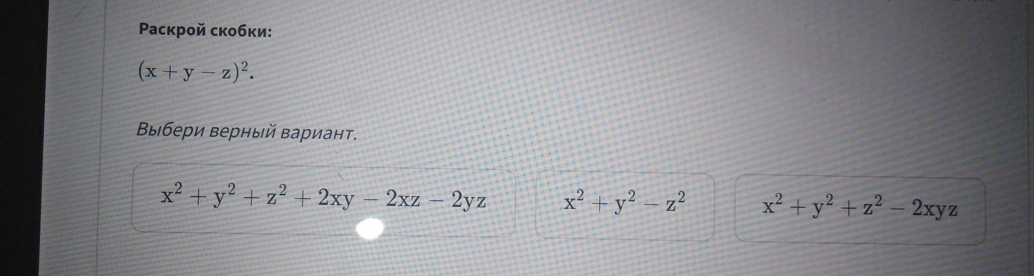 (х + у - z)² = x*x + x*y - x*z + y*x + y*y - y*z - z*x - z*y + z*z
