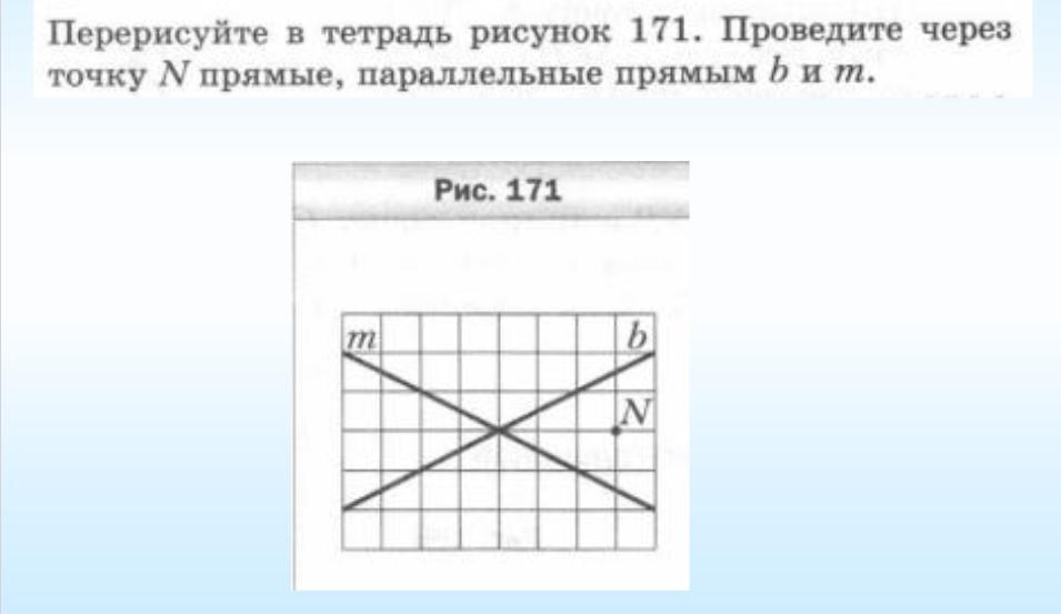 перерисуйте в тетрадь рисунок 171 . провиди через точку N ПРЯМЫЕ параллельные прямым b и m