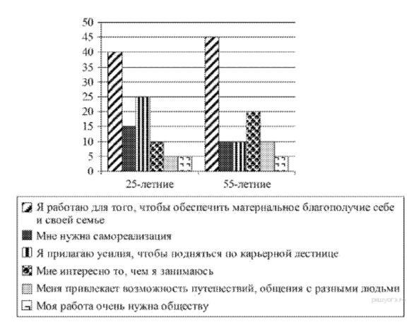 СРОЧНО ДАЮ 60 БАЛЛОВ!!!!!!! Рассмотрите диаграмму. Жители страны N, отвечали на вопрос: « Почему вы работаете?». Сделайте выводы 1) 50% молодежи трудятся, для обеспечения материального благополучия. 2) Для людей старшего возраста необходимость в карьере и самореализации равна. 3) Тех, кто трудится, потому, что им интересно, больше среди людей старшего возраста 4)Большее количество молодежи, работают потому, что их привлекает общение с людьми и возможность путешествовать 5) Равное количество людей каждой группы считают, что их работа нужна обществу.