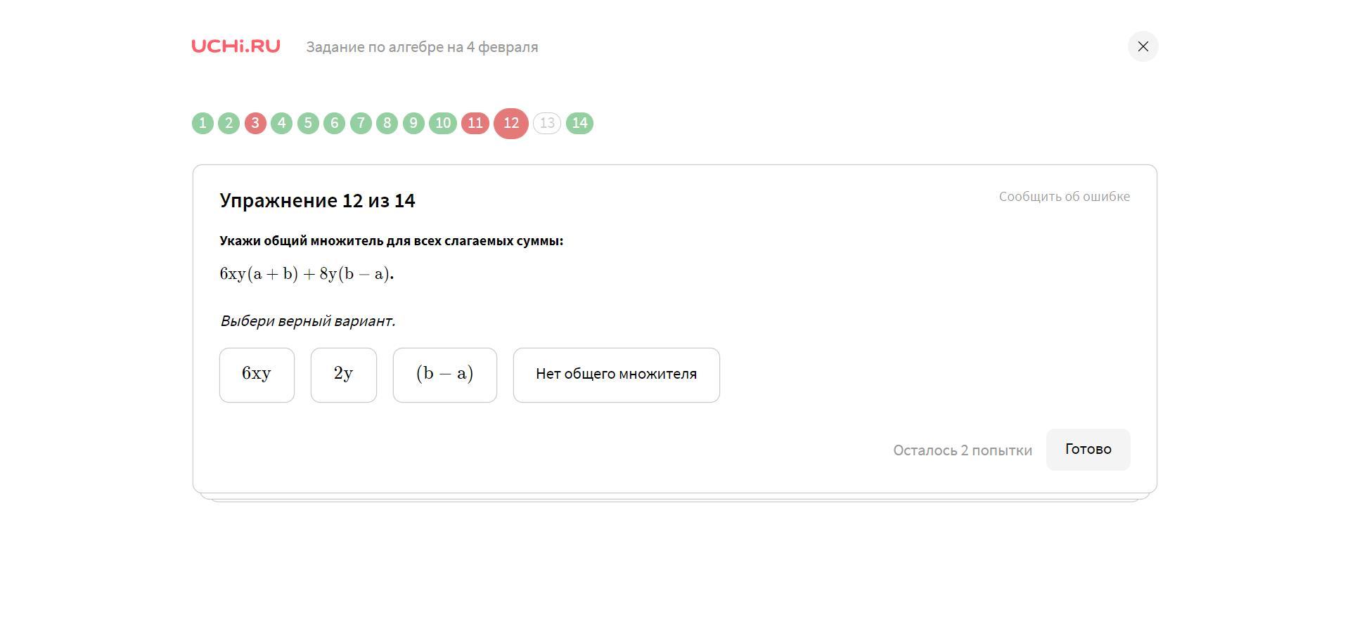 В первом это одинокавое выражение, которое присутствует во всех слагаемых, а во втором и 6ху и 8у можно разделить на 2у