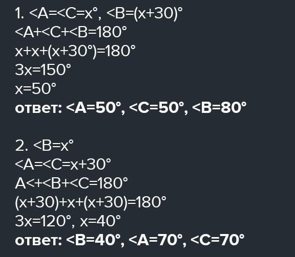 Знайдіть кути рівнобедриного трикутника,якщо один з них на 40° більший від іншого розгляньте два випадки