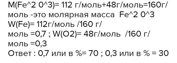 Определите массовую долю (%) кислорода в оксиде железа Fe203. Ответ запишите с точностью до