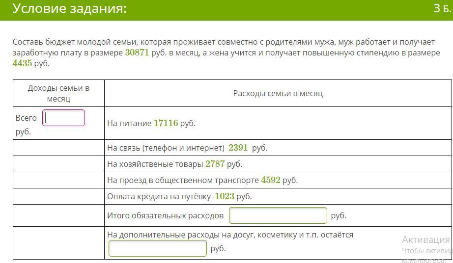 Ответ доходы семьи в месяц 30 тысяч рублей