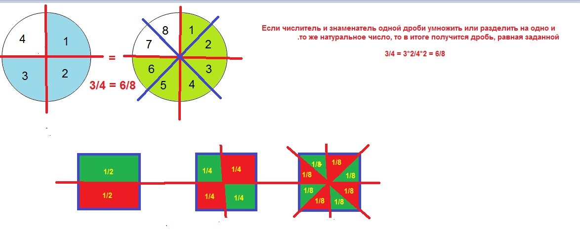 Схема: 3/4 и 6/8, от одной и той же величины, равны - во вложении