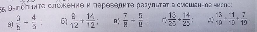 д) 13/19+11/19+7/19=31/19=1 12/19
