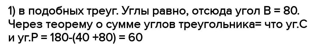 у подобных треугольников соответствующие углы равны, поэтому ∠N=∠B=80°; а ∠С=180°-∠А-∠В=180°-40°-80°=60°