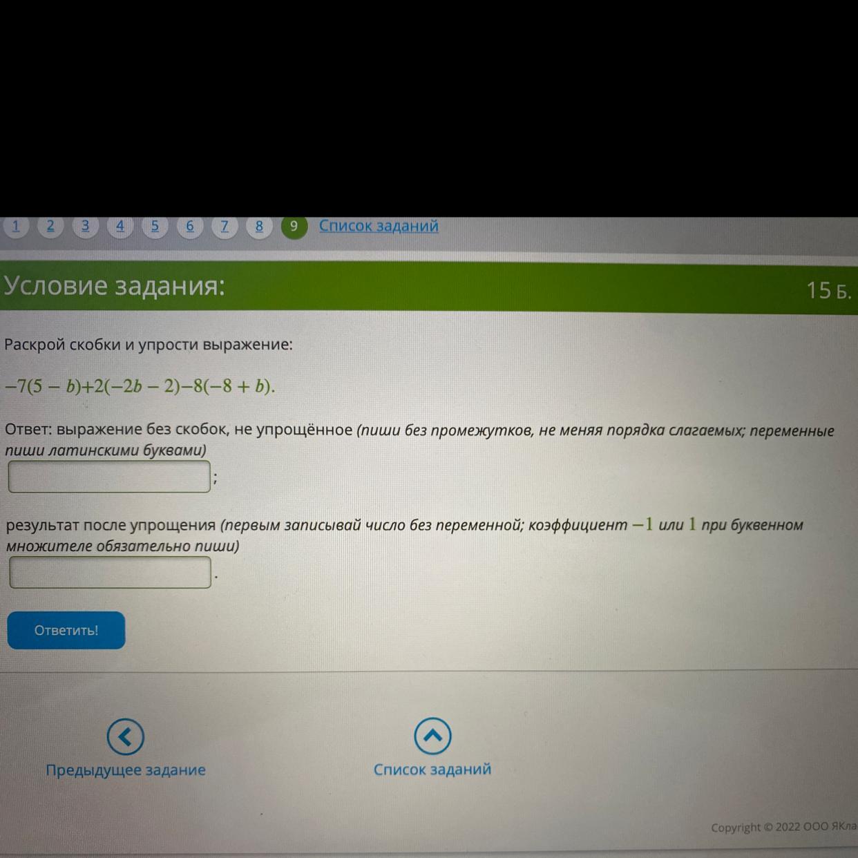 -7×(5-b)+2×(-2b-2)-8×(-8+b)=
